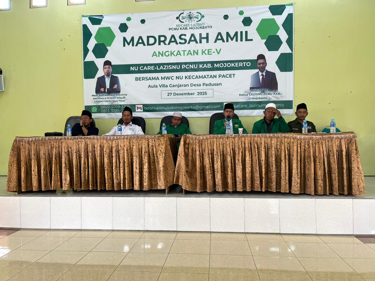 Mojokerto, 27 Desember 2025 - Lembaga Amil Zakat Infaq dan Shadaqah Nahdlatul Ulama (LAZISNU) PCNU Kabupaten Mojokerto bekerjasama dengan LAZISNU MWCNU Pacet menggelar Madrasah Amil Angkatan ke V di Aula Vila Ganjaran, Sabtu (27/12/25). Acara ini diikuti oleh sekitar 58 peserta yang terdiri dari pengurus LAZISNU dan masyarakat sekitar.